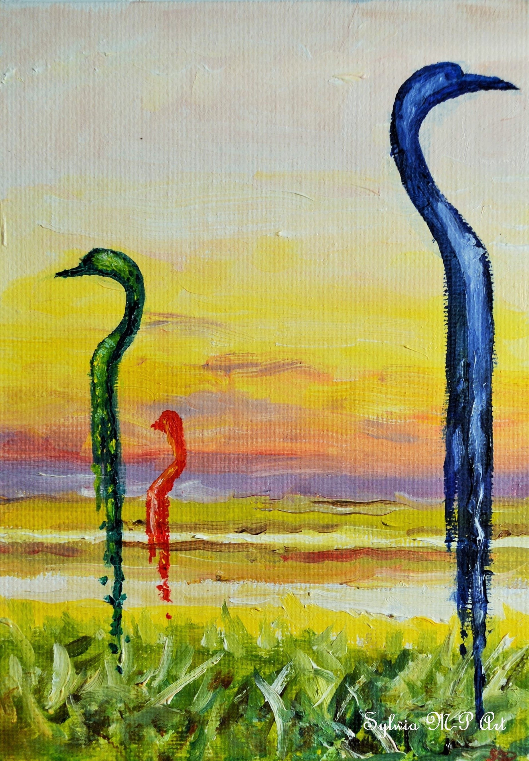Sylwia Maruszczak-Płuciennik ,,Chełmoński’s Cranes Revisited”, oil, canvas on board, 12.5/ 18, 2015.