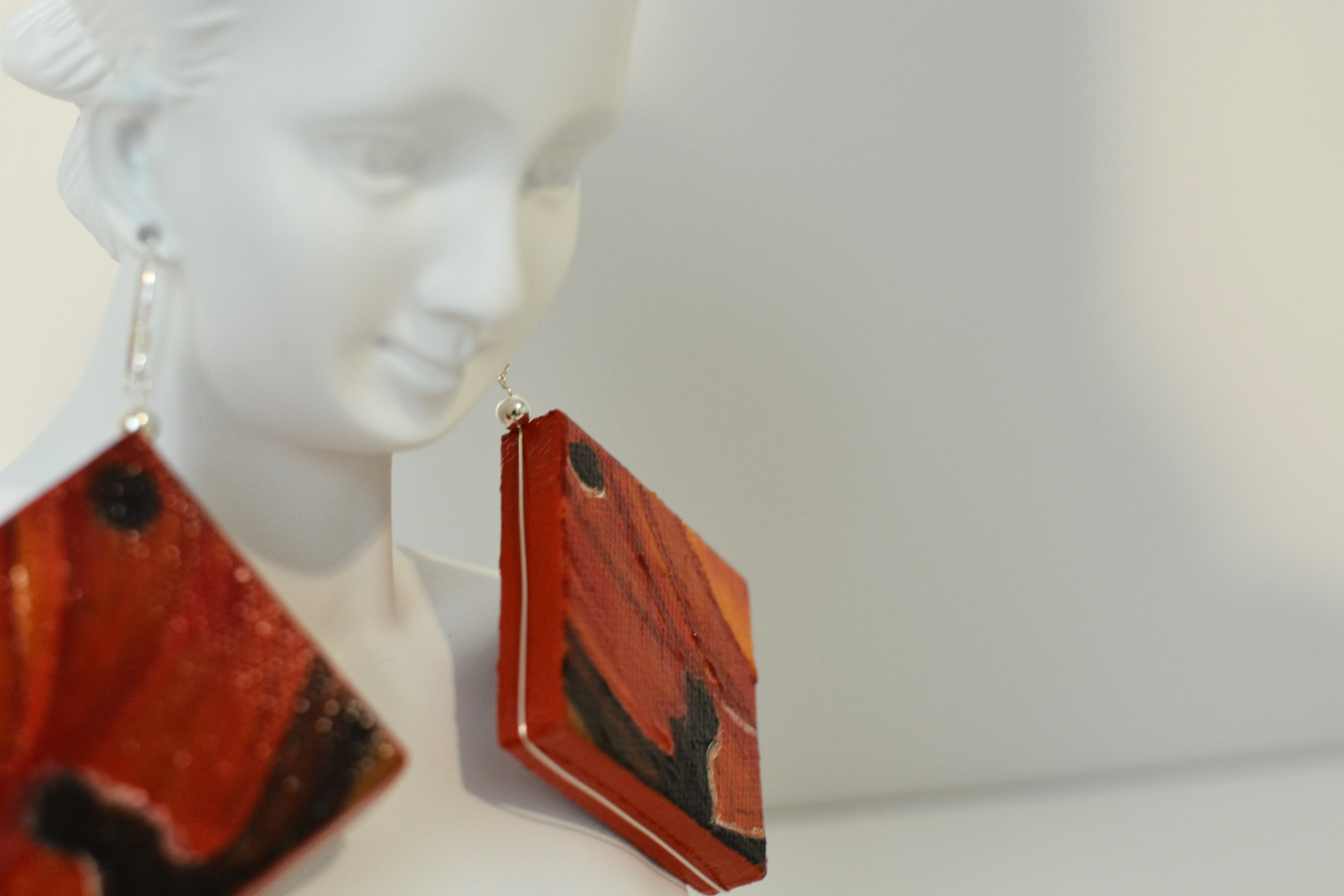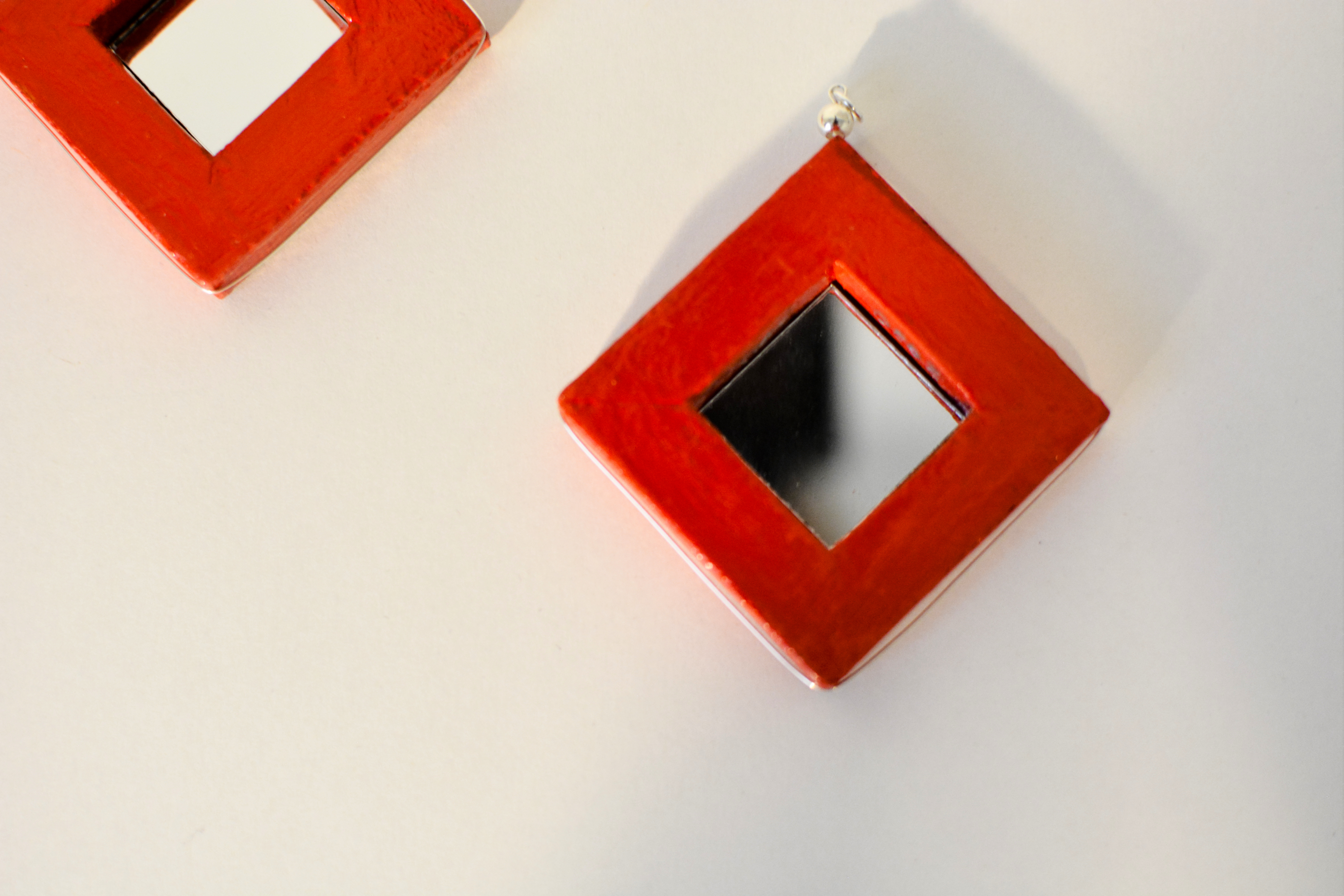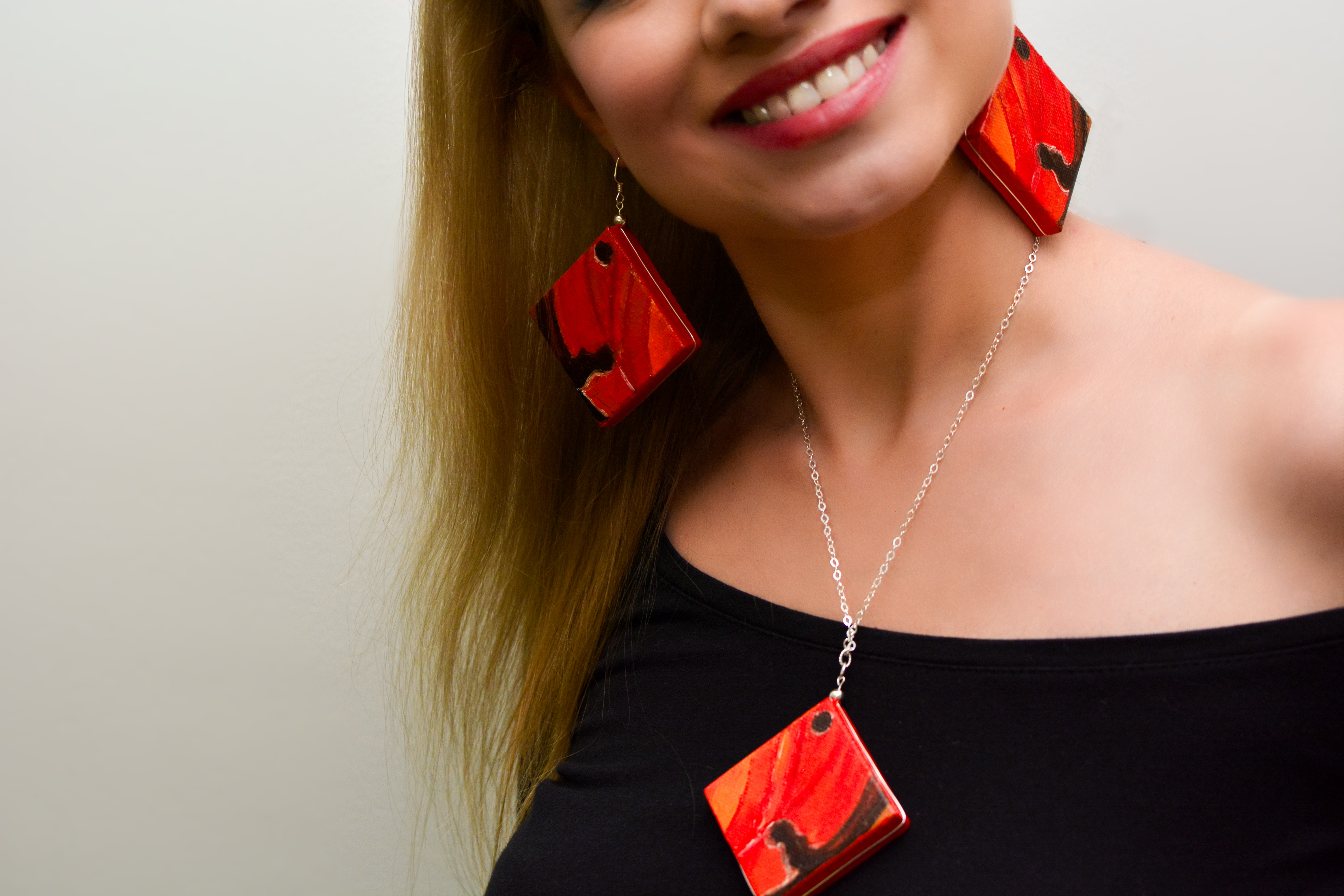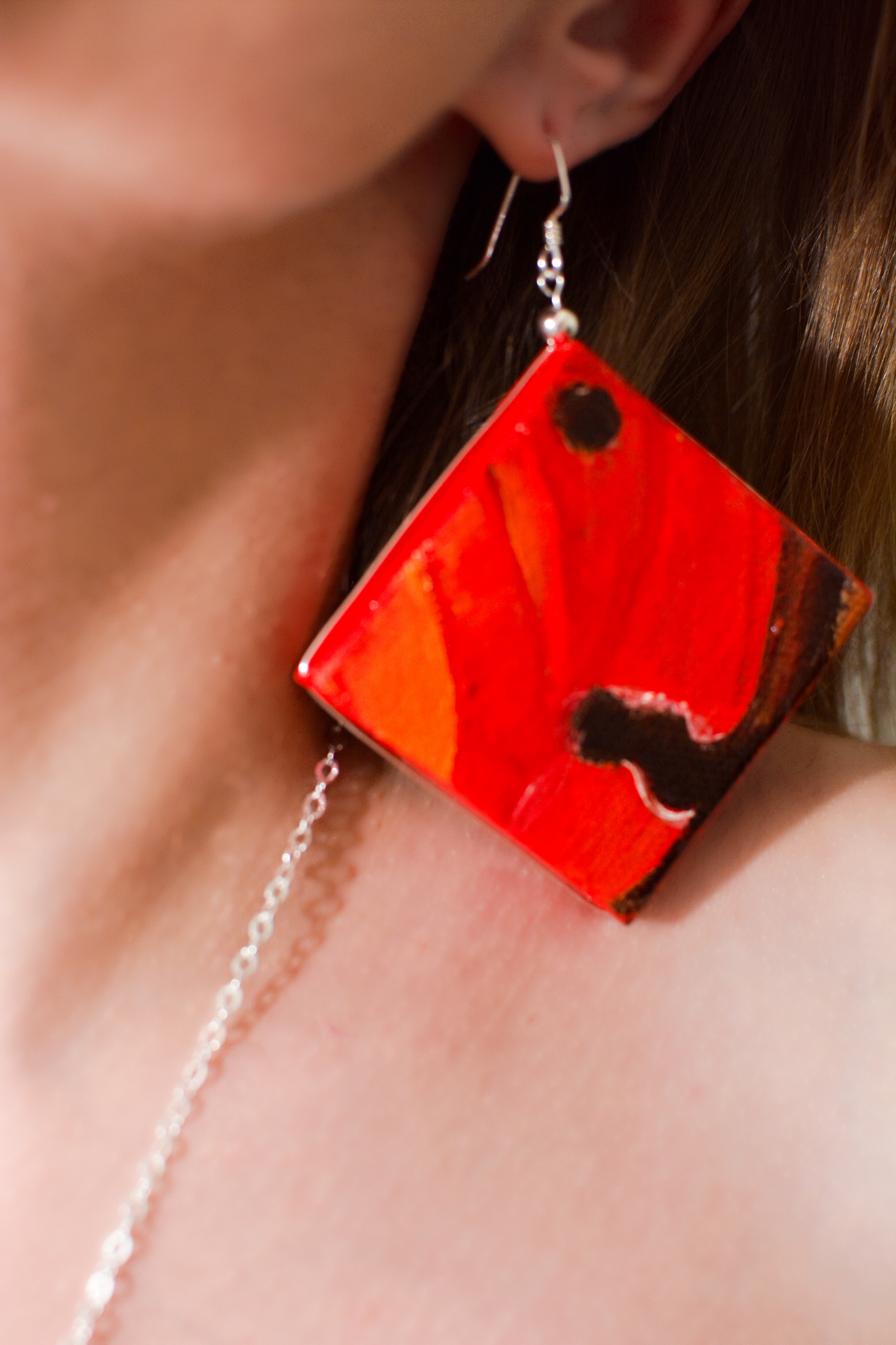 The eighth set of the painting jewelry I present is “Butterfly IX.” The metal elements are made of sterling silver in this set as well. To increase the contrast I have used mirrors.