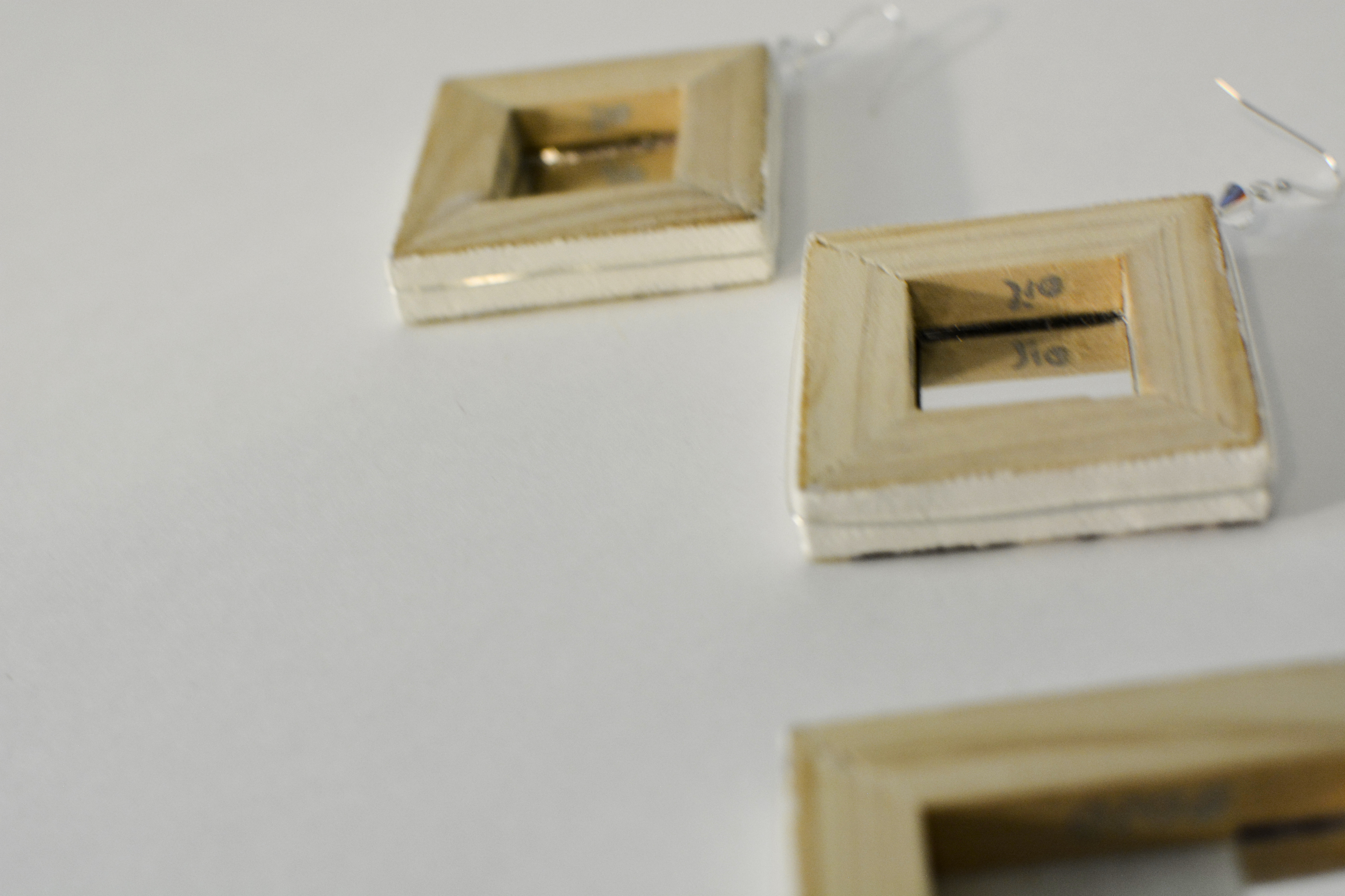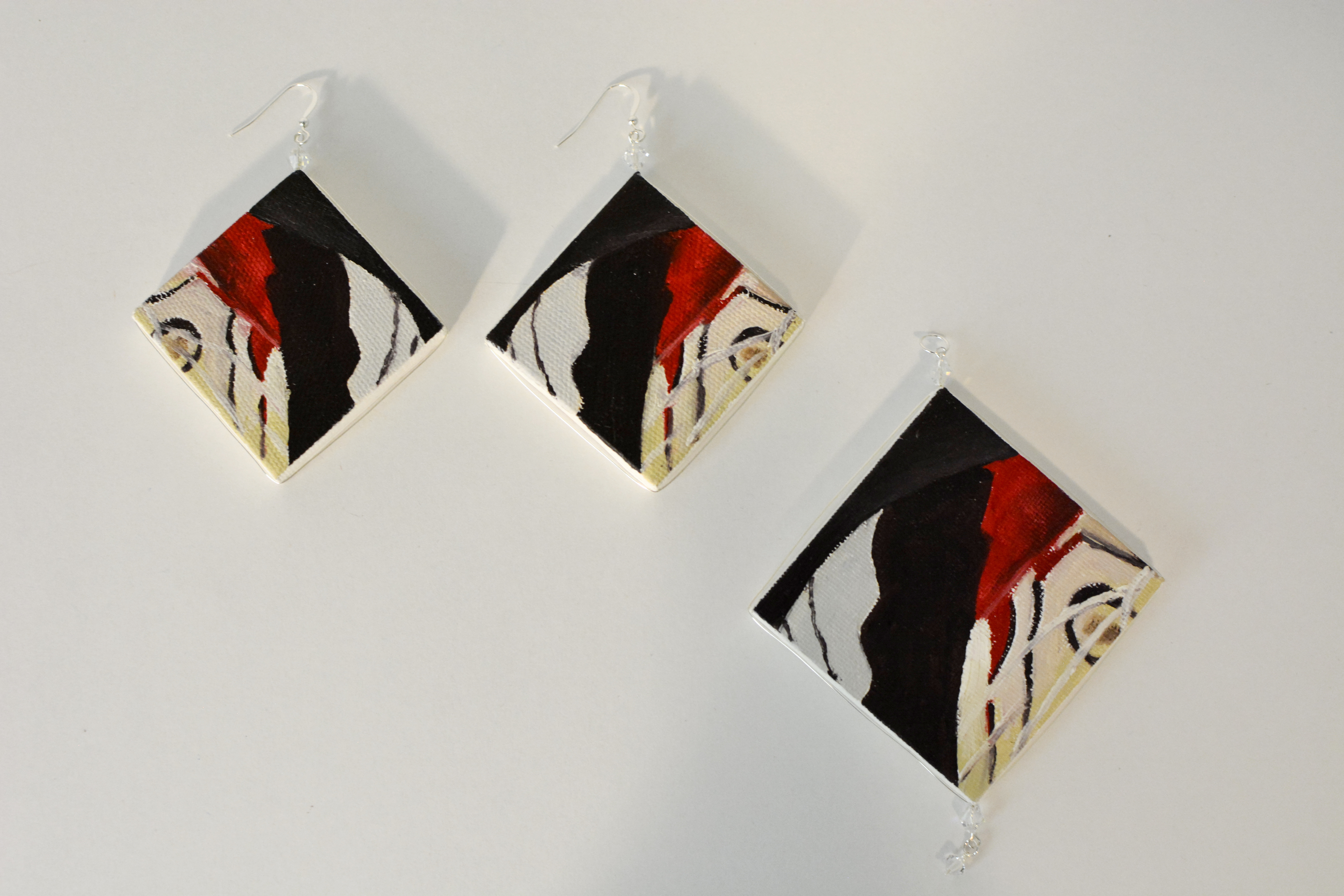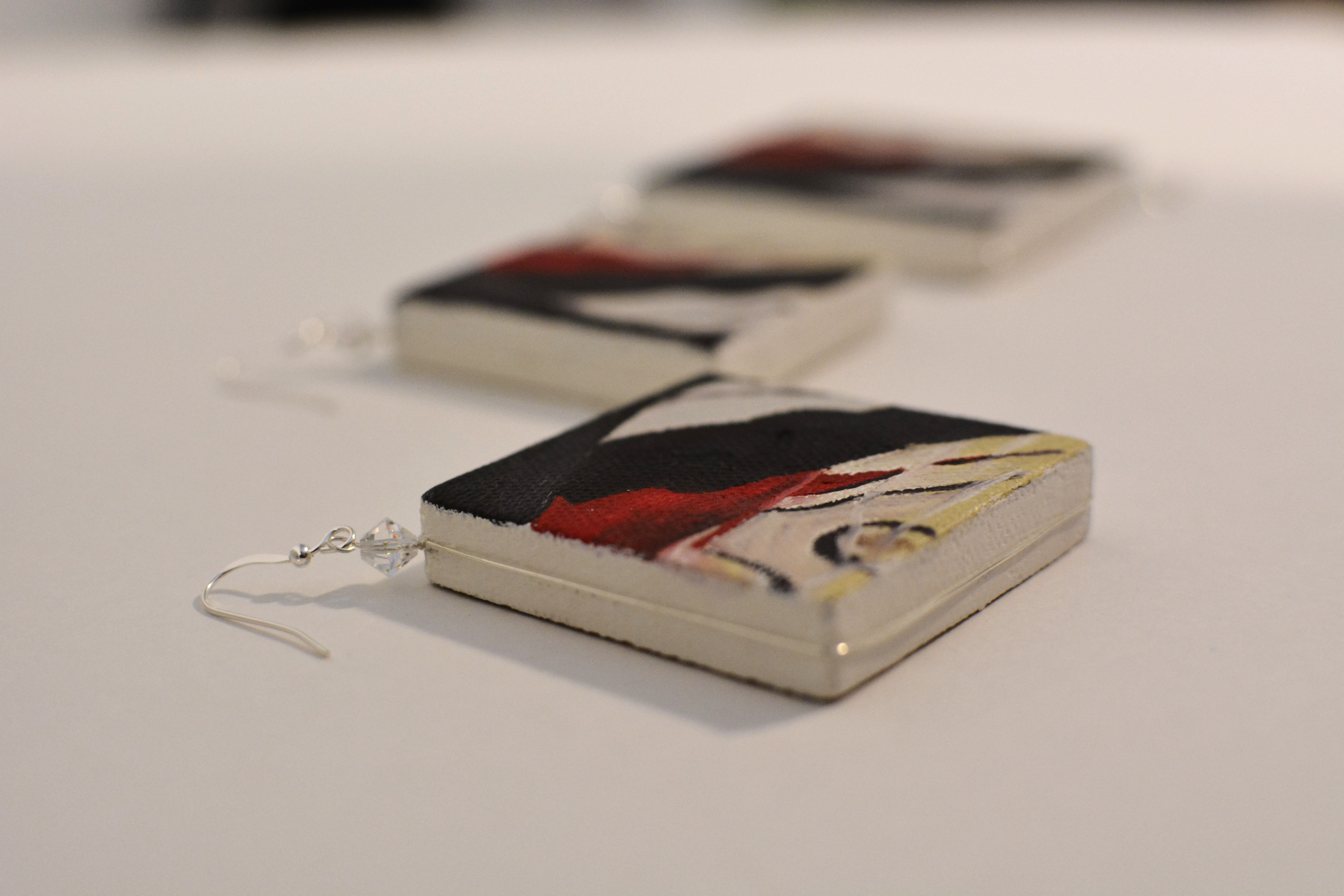 The ninth set of the painting jewelry I present is “Butterfly X.” The metal elements are made of sterling silver in this set as well. To increase the contrast I have used mirrors.
