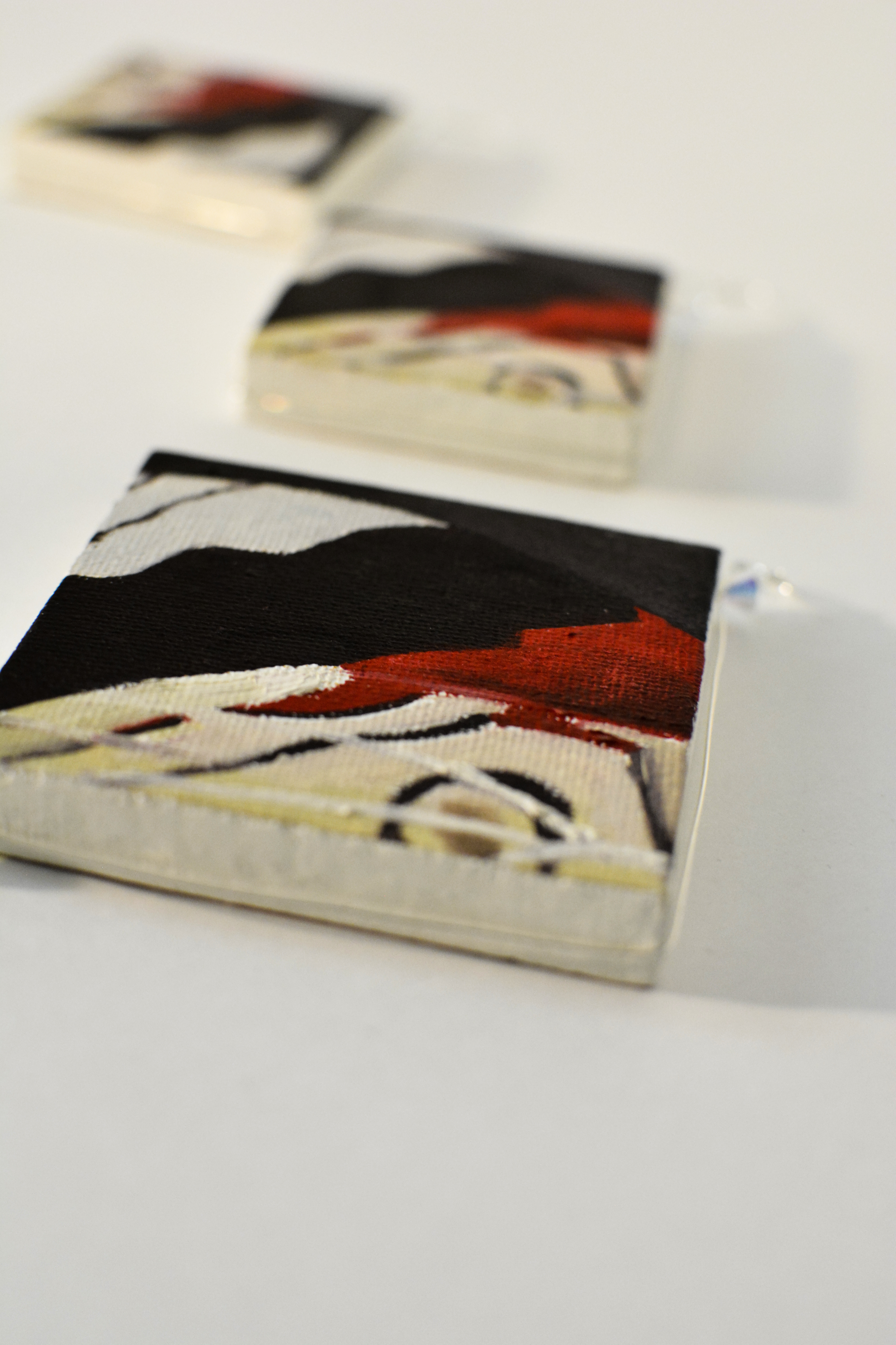 - three oil paintings on canvas, two 5 by 5 cm and one 6,5 by 6,5 cm