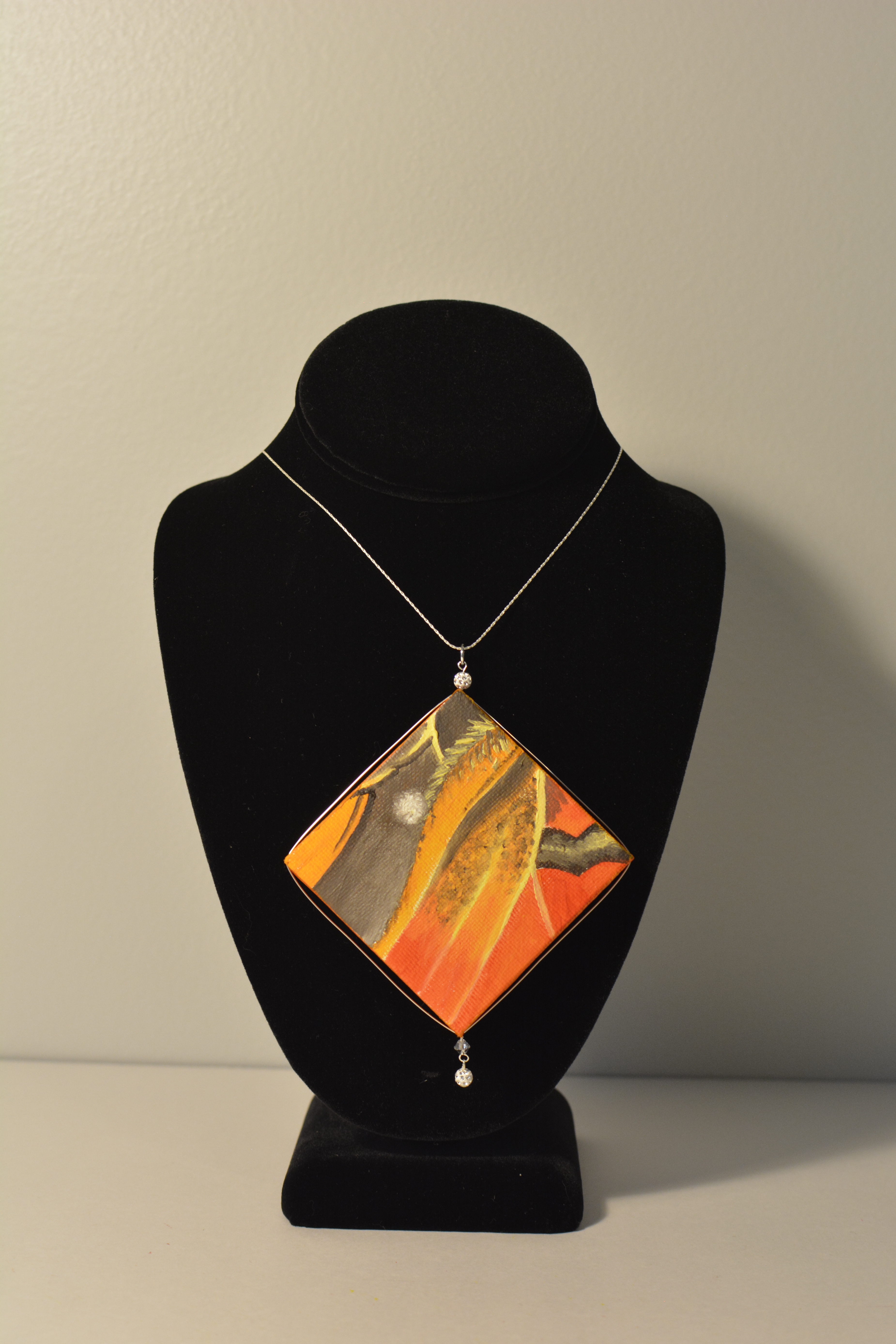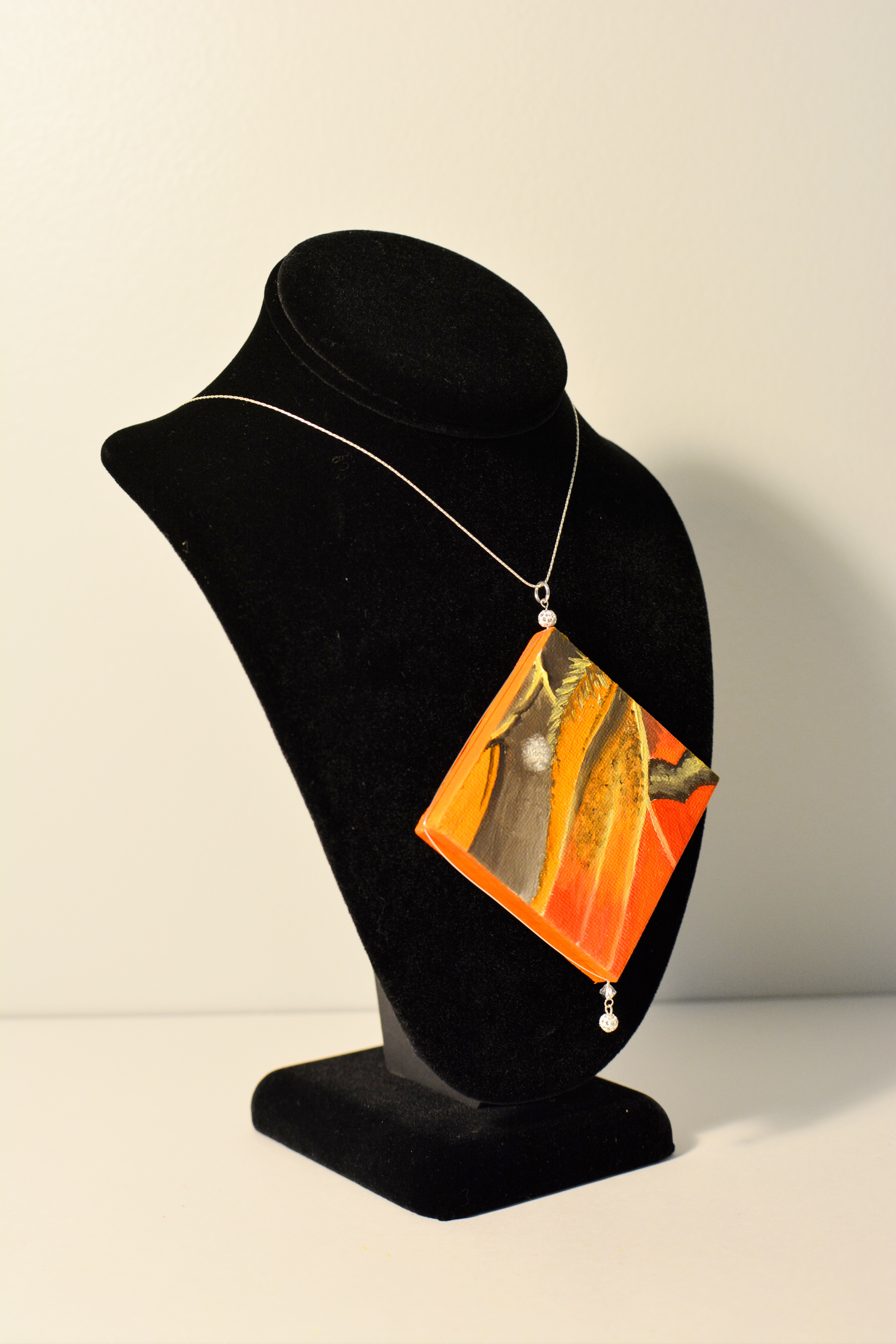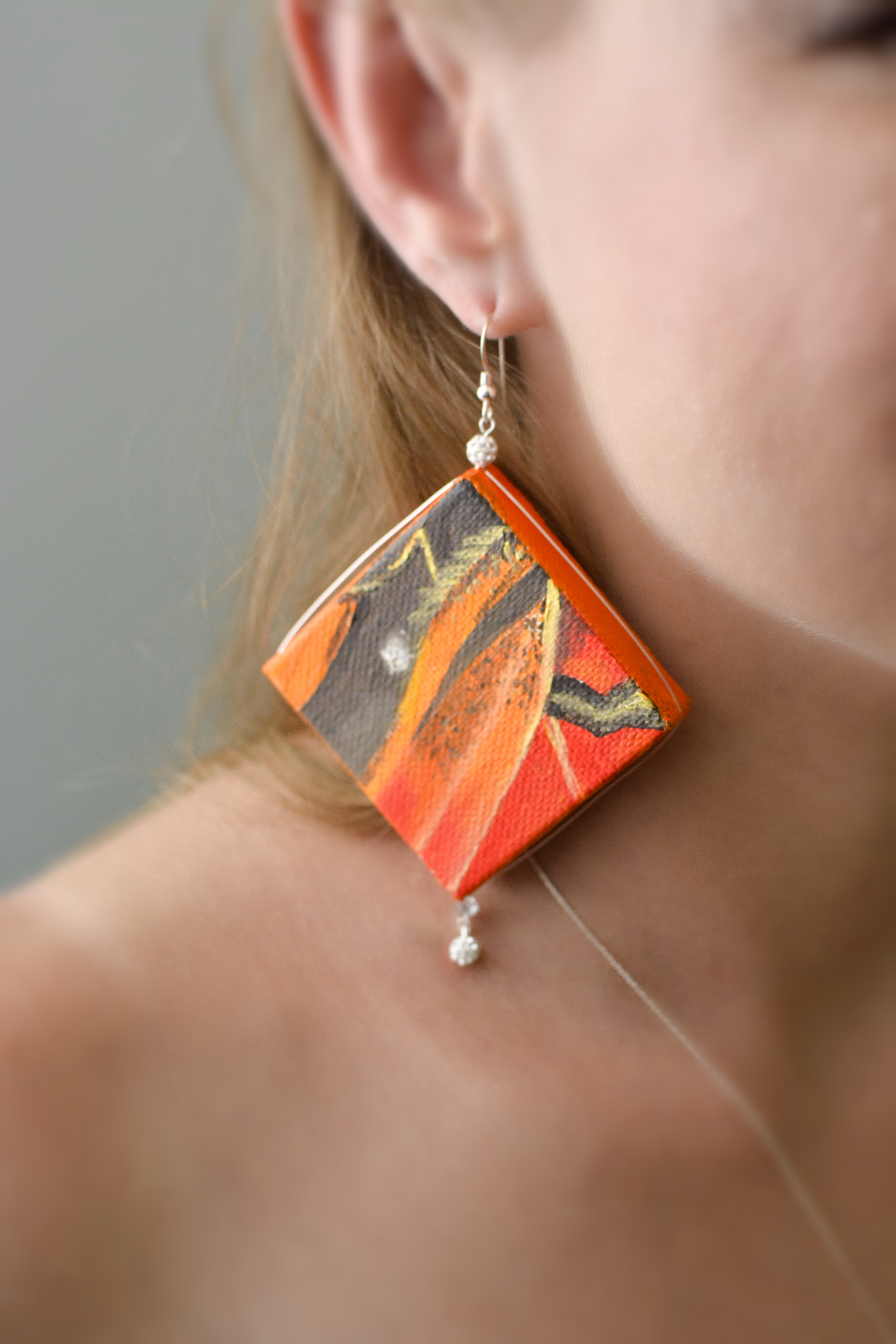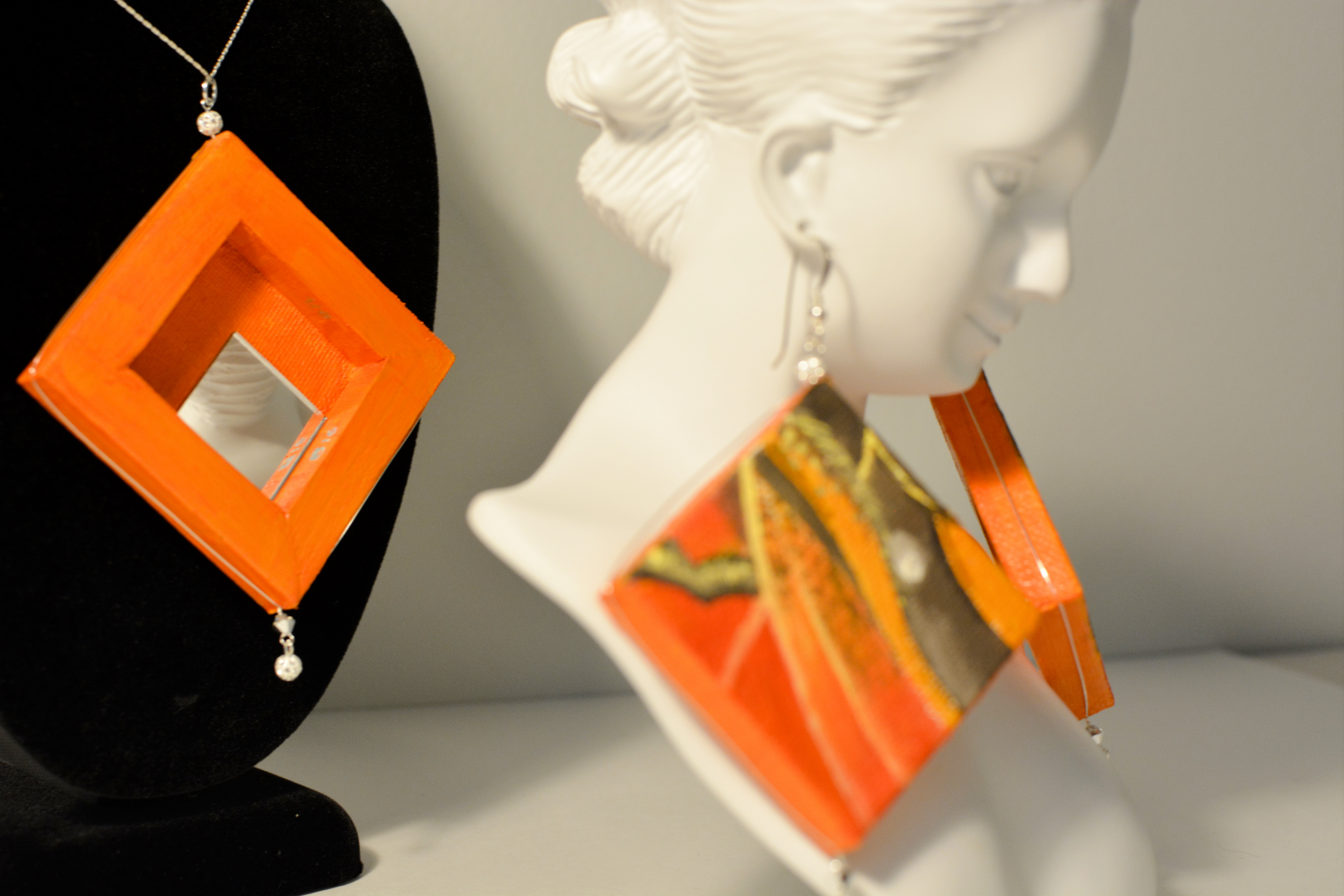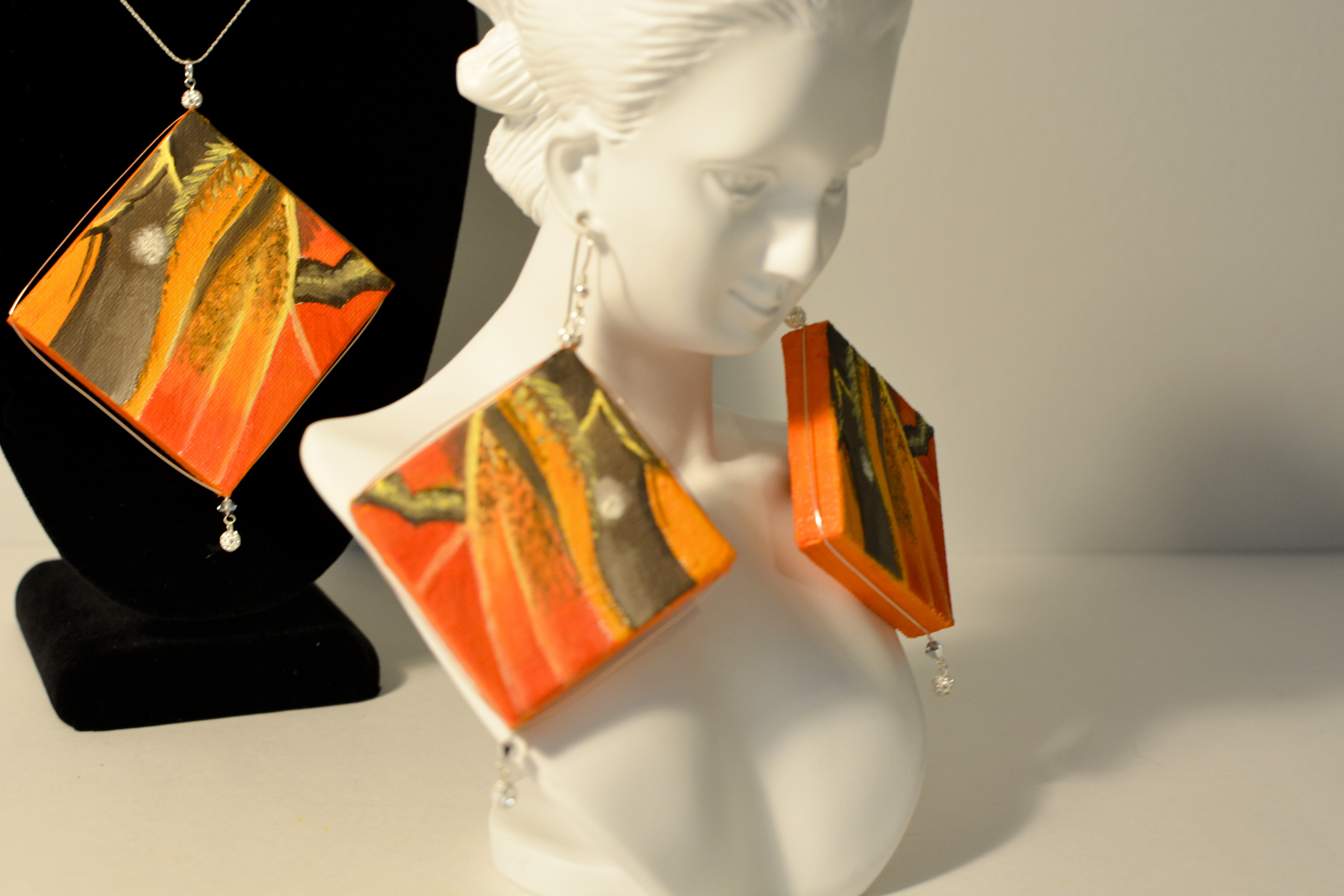 The seventeenth set of the painting jewelry I present is “Butterfly XVI.” The metal elements are made of sterling silver in this set as well. To increase the contrast I have used mirrors.