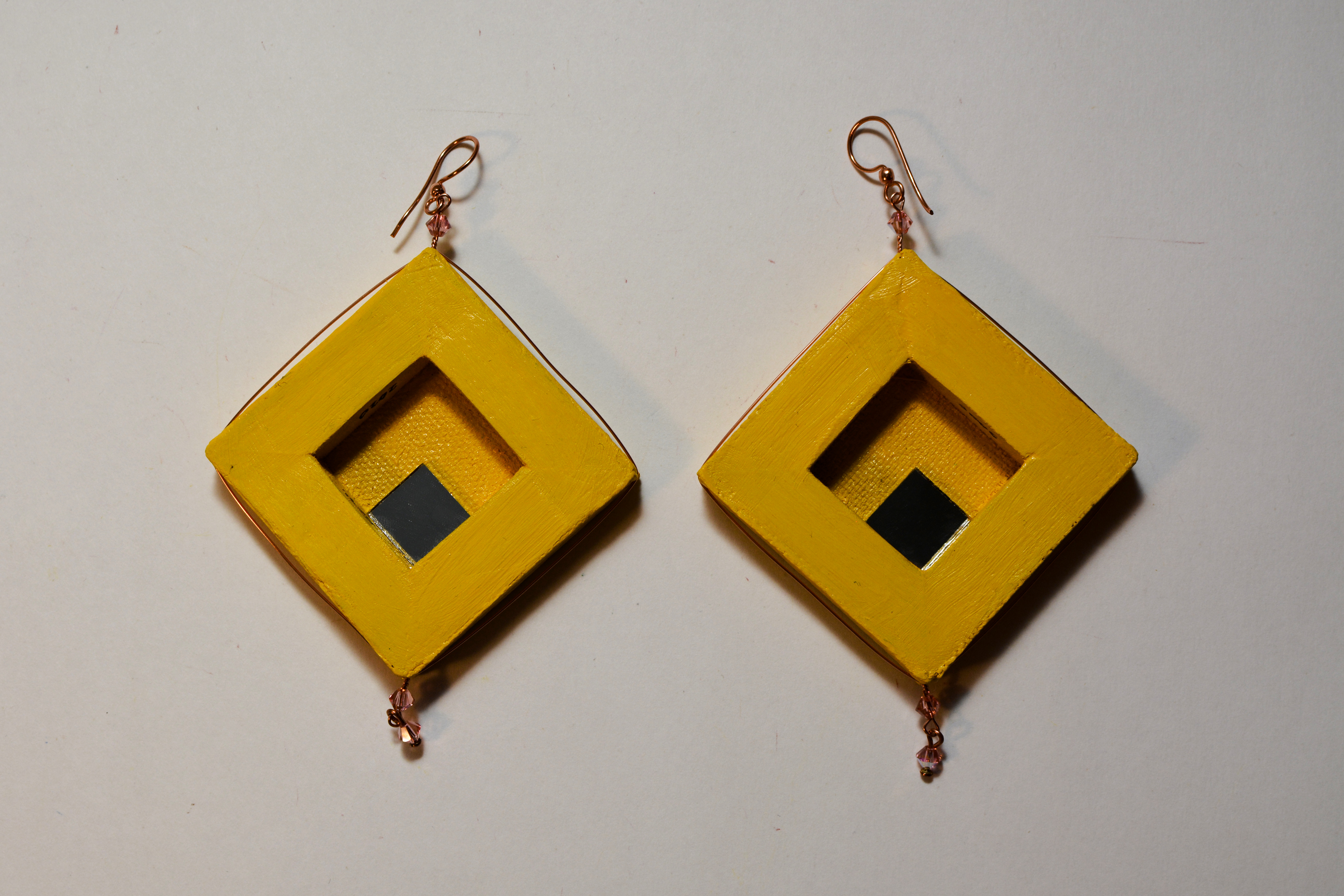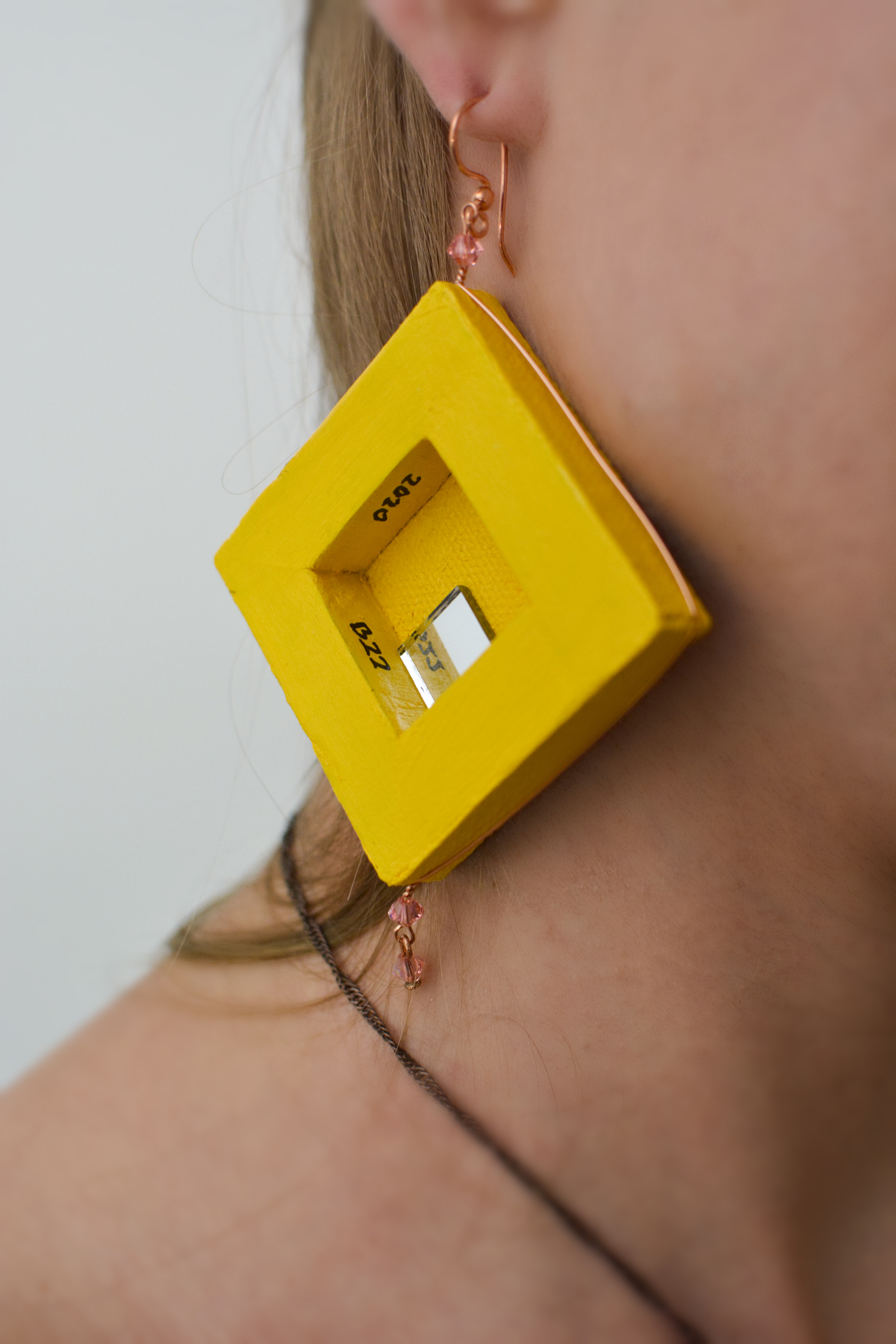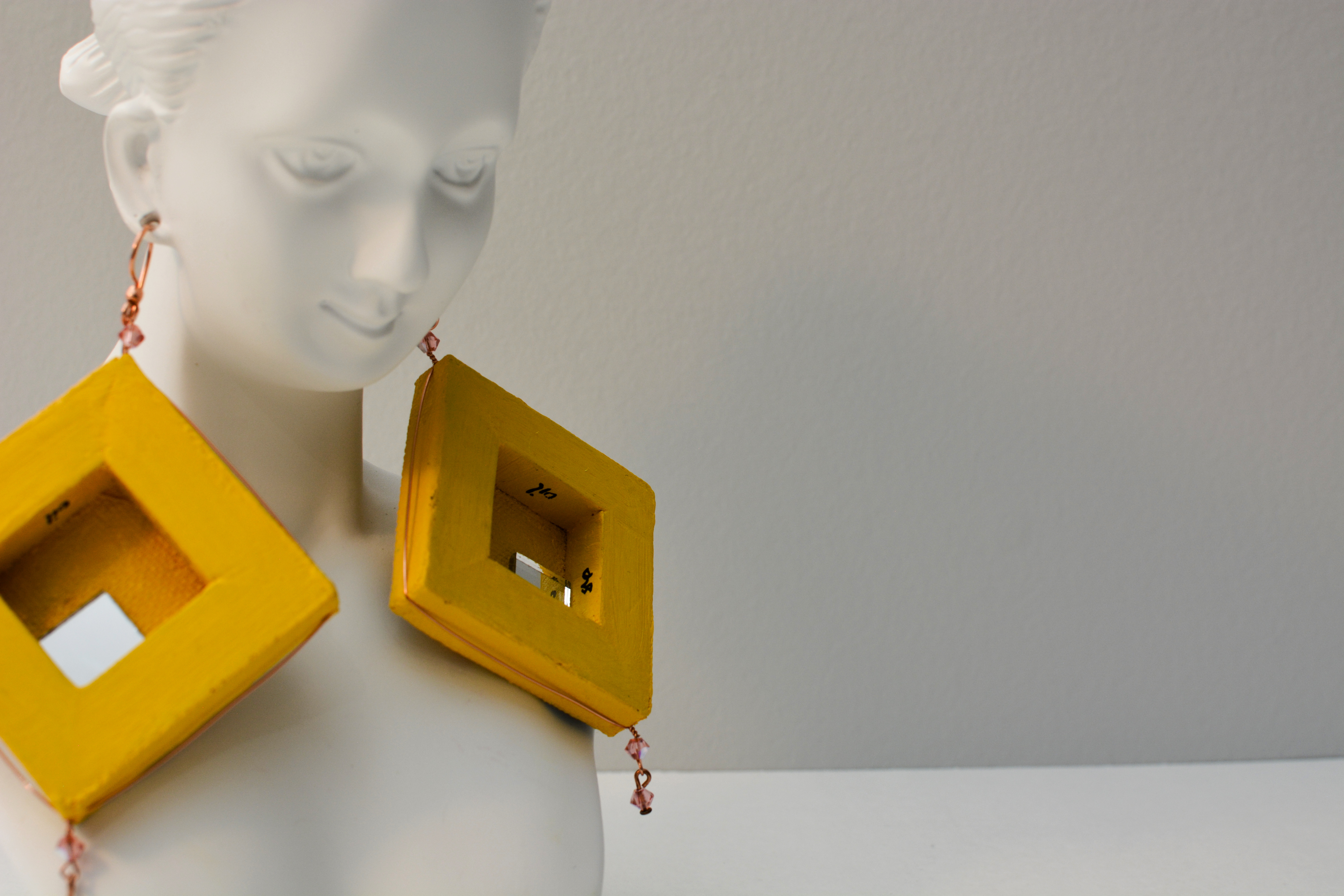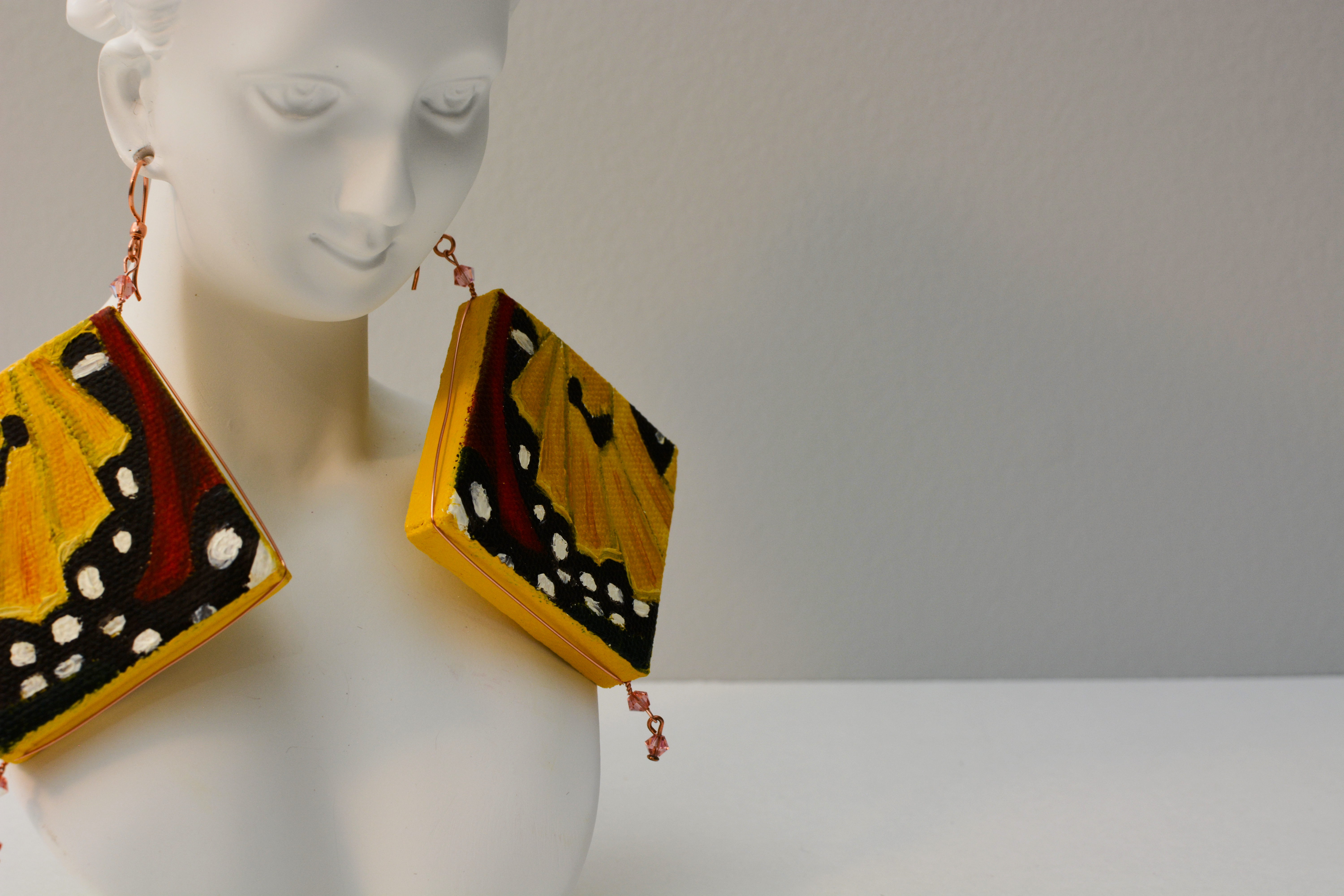 The twenty-second set of the painting jewelry I present is “Butterfly XXII.” The metal elements are made of copper in this set as well. To increase the contrast I have used mirrors.