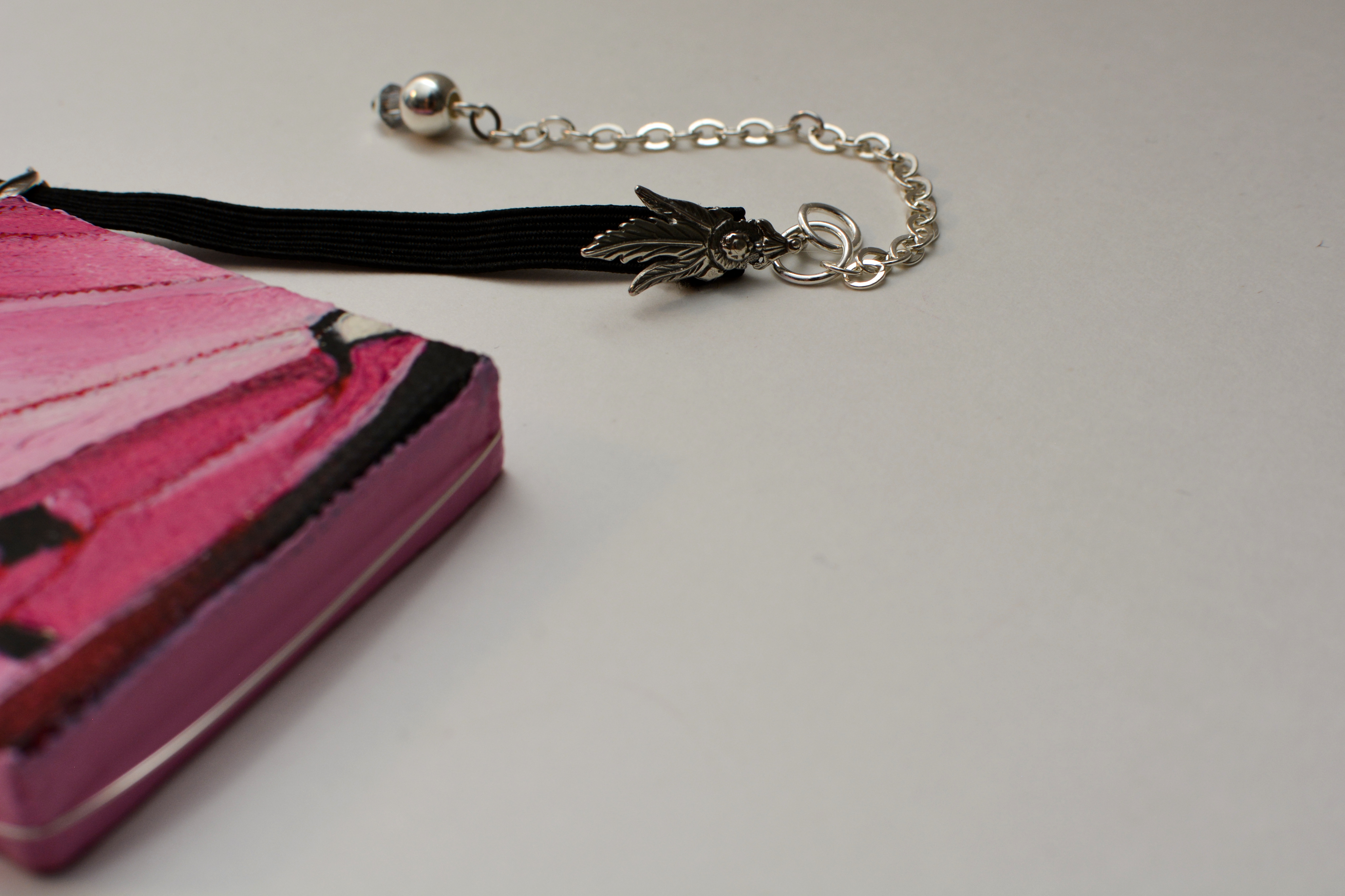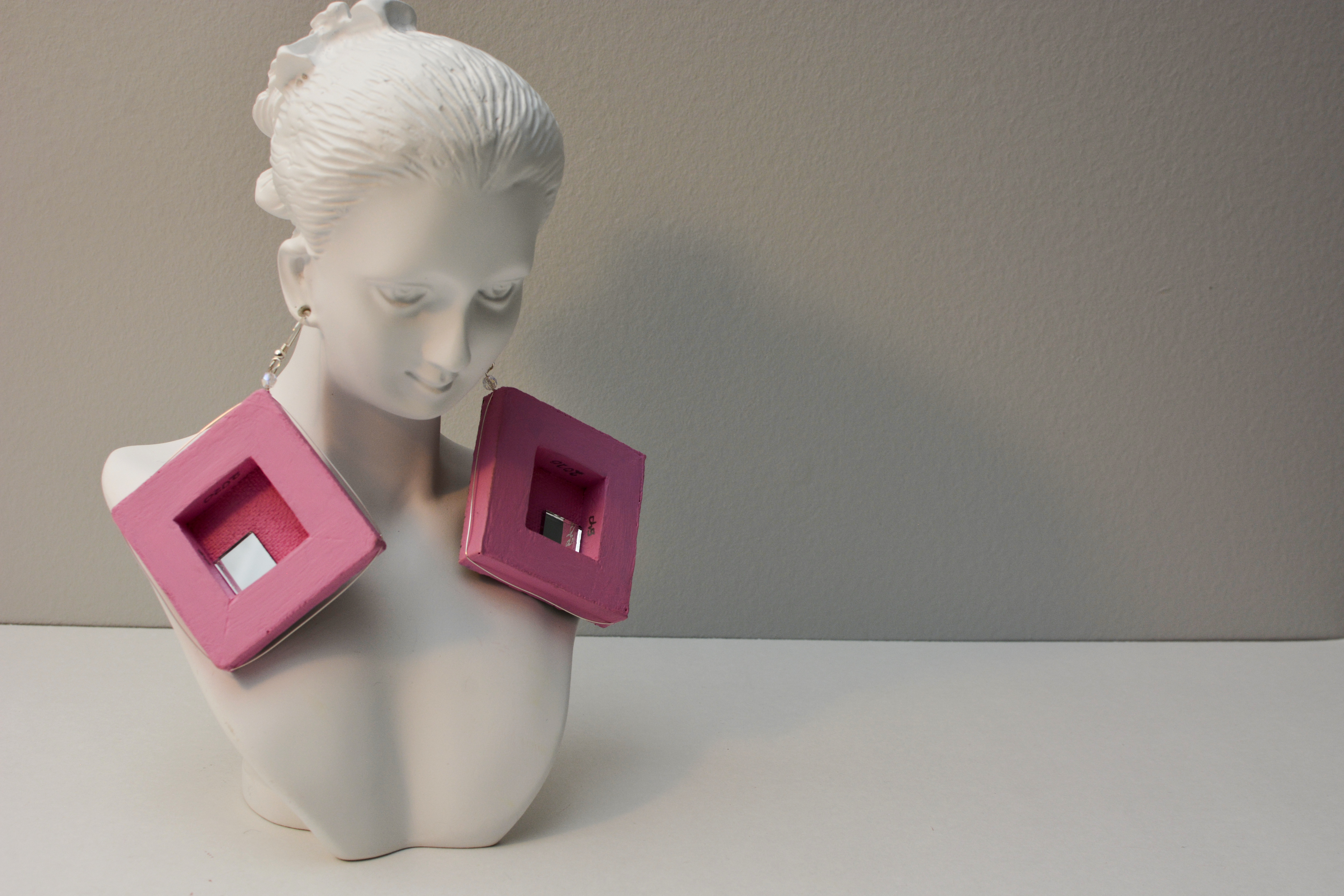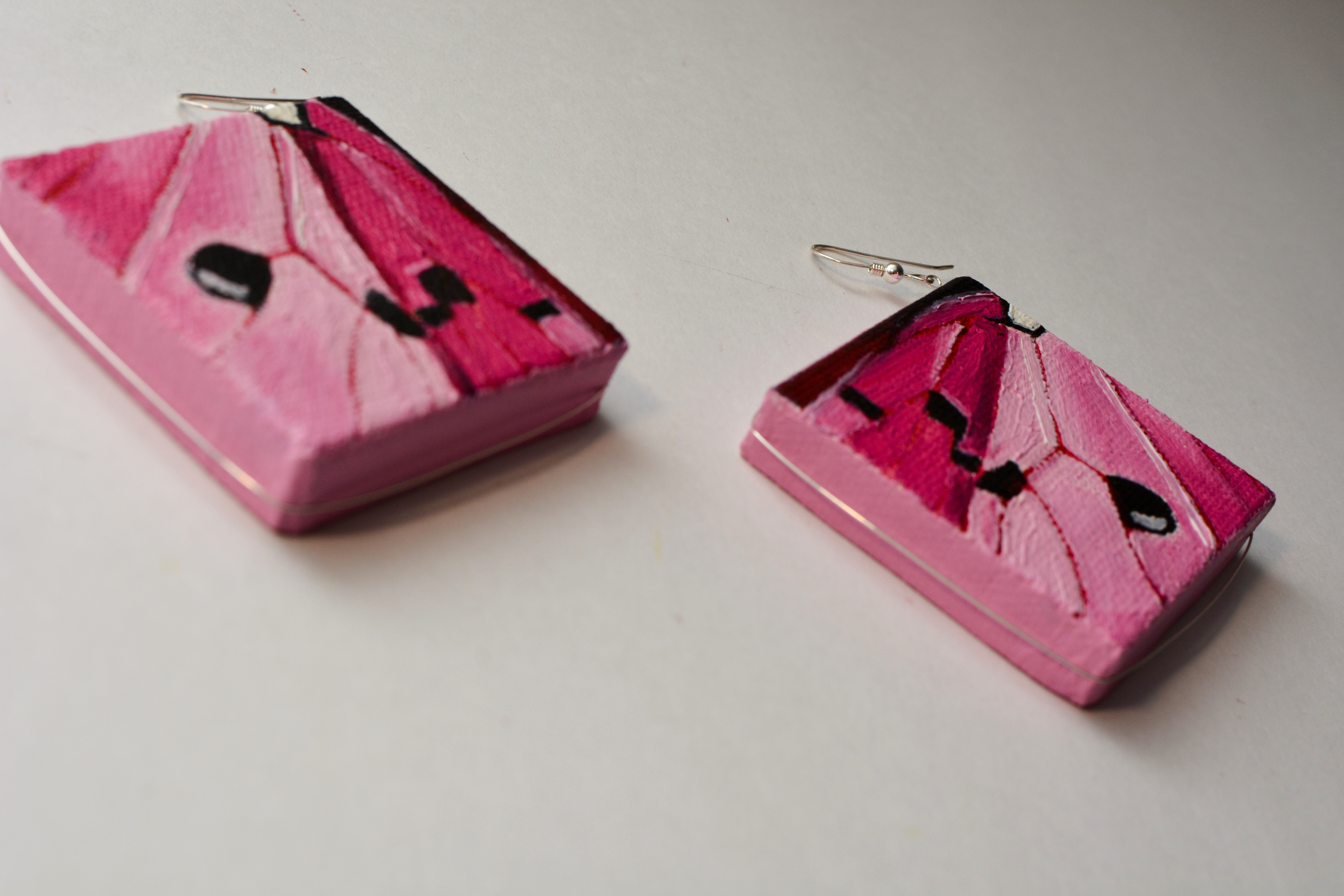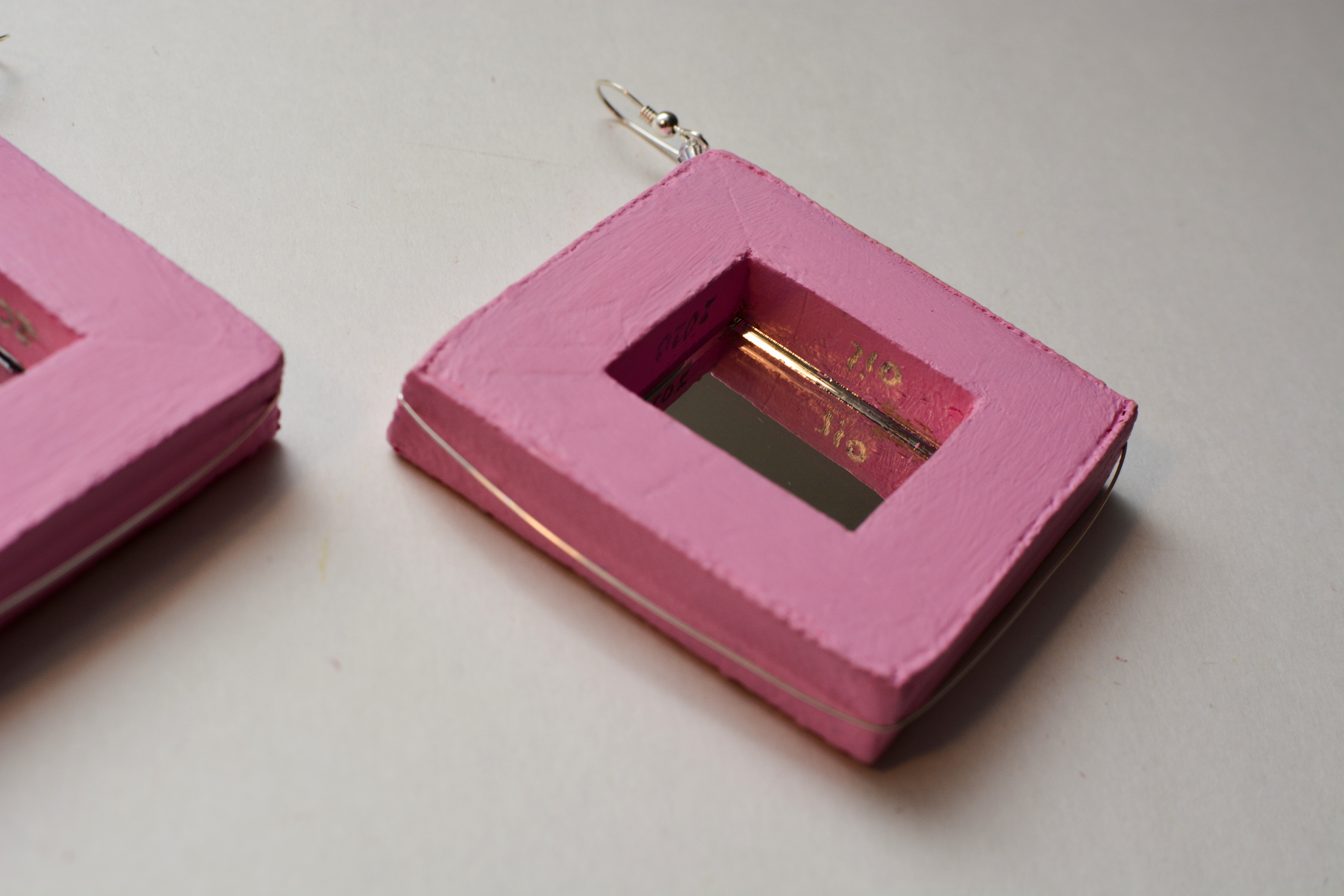 I used to dislike pink. Now I think every color is beautiful. Something for those who like pink. The twenty-third set of the painting jewelry I present is “Butterfly XXIII.” The metal elements are made of sterling silver in this set as well. To increase the contrast I have used mirrors.